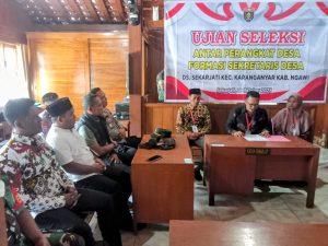 karanganyar.ngawikab.go.id, Ujian perangkat desa umumnya terdiri dari tiga tahap utama: tes tertulis, tes komputer/teknis, dan tes wawancara. Materi tes tertulis mencakup pengetahuan umum, wawasan kebangsaan, dan peraturan perundang-undangan terkait pemerintahan desa. Sementara itu, tes komputer menguji kemampuan dasar operasional, dan wawancara bertujuan menilai kepribadian serta kemampuan komunikasi. Pengumuman hasil rekapitulasi penilaian ujian Perangkat Desa (Sekdes) Sekarjati dimenangkan oleh Bapak Suparjo Kasun Dondong Kecamatan Karanganyar.